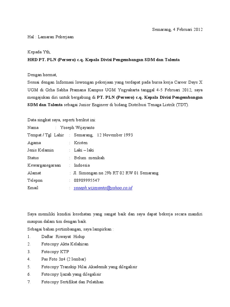 Surat lamaran kerja di pt. Pengertian surat lamaran, surat pengantar, surat motivasi merupakan sebuah surat pengantar yang melekat pada, atau yang menyertai dokumen lain sat ini saya bekrja sebagai staff accounting di pt. Saya senang untuk belajar dan juga dapat mekerja secara mandiri maupun. Contoh surat lamran kerja simple. Bekerja di bumn memberikan banyak keuntungan terutama dalam masalah finansial.