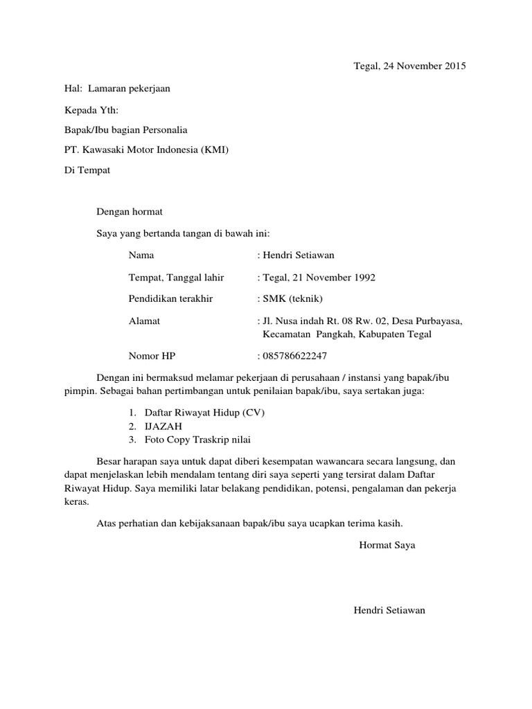 Kepada yth pt bank negara indonesia (persero) di tempat. Nah, bagi anda yang sedang membutuhkan referensi tentang bagaiman cara membuat surat. Dalam pembuatan surat lamaran ini ada. Salah satu informasi yang paling sering dicari di internet adalah informasi lowongan pekerjaan. Home/edukasi/surat lamaran kerja/contoh surat lamaran kerja di pt sebagai karyawan. Contoh surat kerja untuk yang berpengalaman. Contoh surat lamaran kerja di pt. Hrd manager pt rocket manajemen group. Kumpulan contoh surat lamaran kerja yang baik dan benar untuk melamar di pt / pabrik, rumah sakit, restoran, toko, sekolah dll. Di bawah ini ada beberapa contoh surat lamaran kerja dengan menggunakan bahasa indonesia yang baik dan benar yang bisa anda jadikan referensi untuk melamar pekerjaan di pt bumn favorit anda atau impian anda. Kepada yth, manager personalia pt. Berikut contoh surat lamaran pekerjaan terbaru 2021 resmi yang baik dan benar dengan format formal yang bisa anda unduh untuk melamar di perusahaan bumn. Surat lamaran kerja di pt.